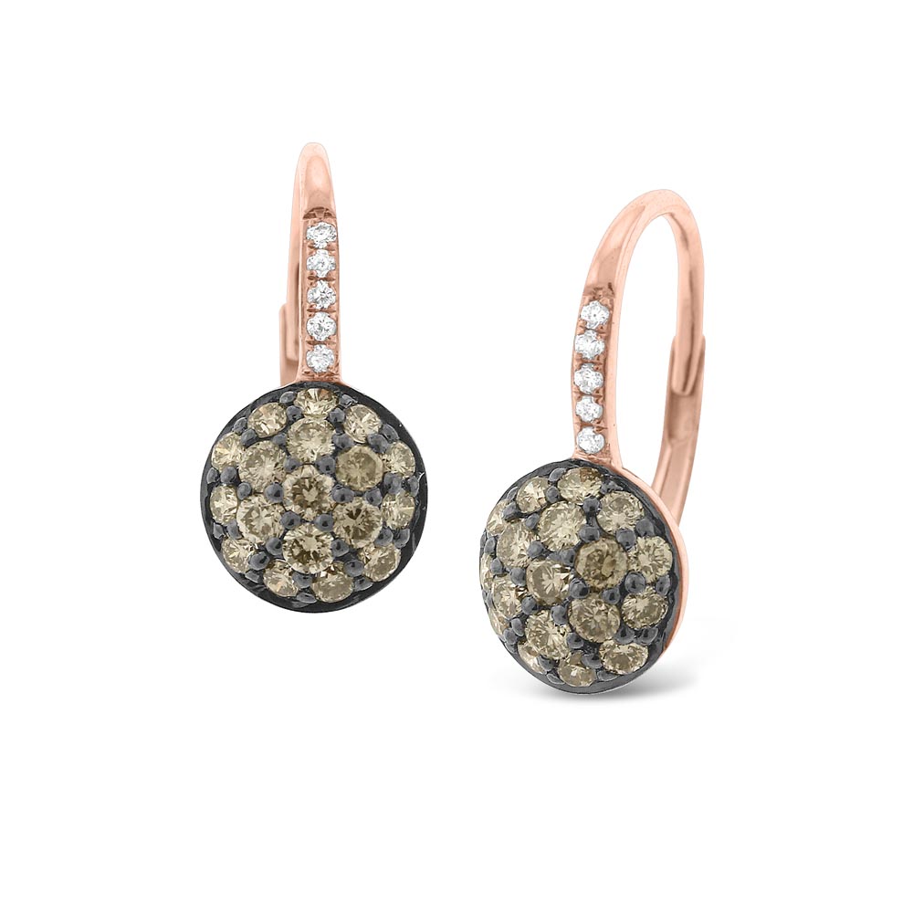 These attractive champagne and white diamond pave disc earrings are a great addition to any outfit. Set in 14K white gold with 46 sparkly diamonds weighing .55ct tw, these earrings can be dressed up or down. If you need a simple, yet elegant pair of earrings, these are the perfect pair.