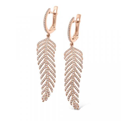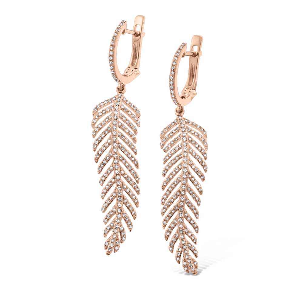 Diamond Large Feather Drop Earrings in 14K Rose Gold with 336 Diamonds Weighing 1.08ct tw