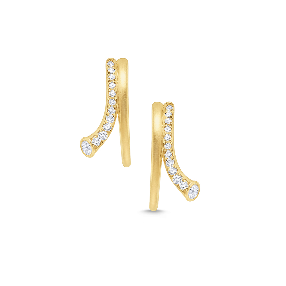 Add a simple golden touch to your ear party. A modern take on the small hoop with a soft satin finish is the perfect accessory, day or night.