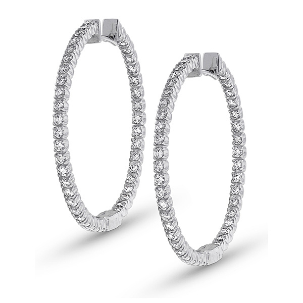 Diamond Inside Outside Hoop Earrings in 14k White Gold with 80 Diamonds weighing 1.60ct tw.