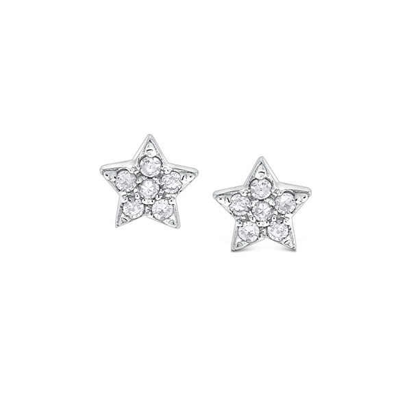 Diamond Star Earrings in 14k White Gold with 12 Diamonds weighing .07ct tw.