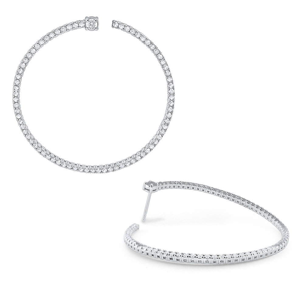 A new twist on the diamond hoop, these large circular gold and diamond earrings are sure to turn heads.