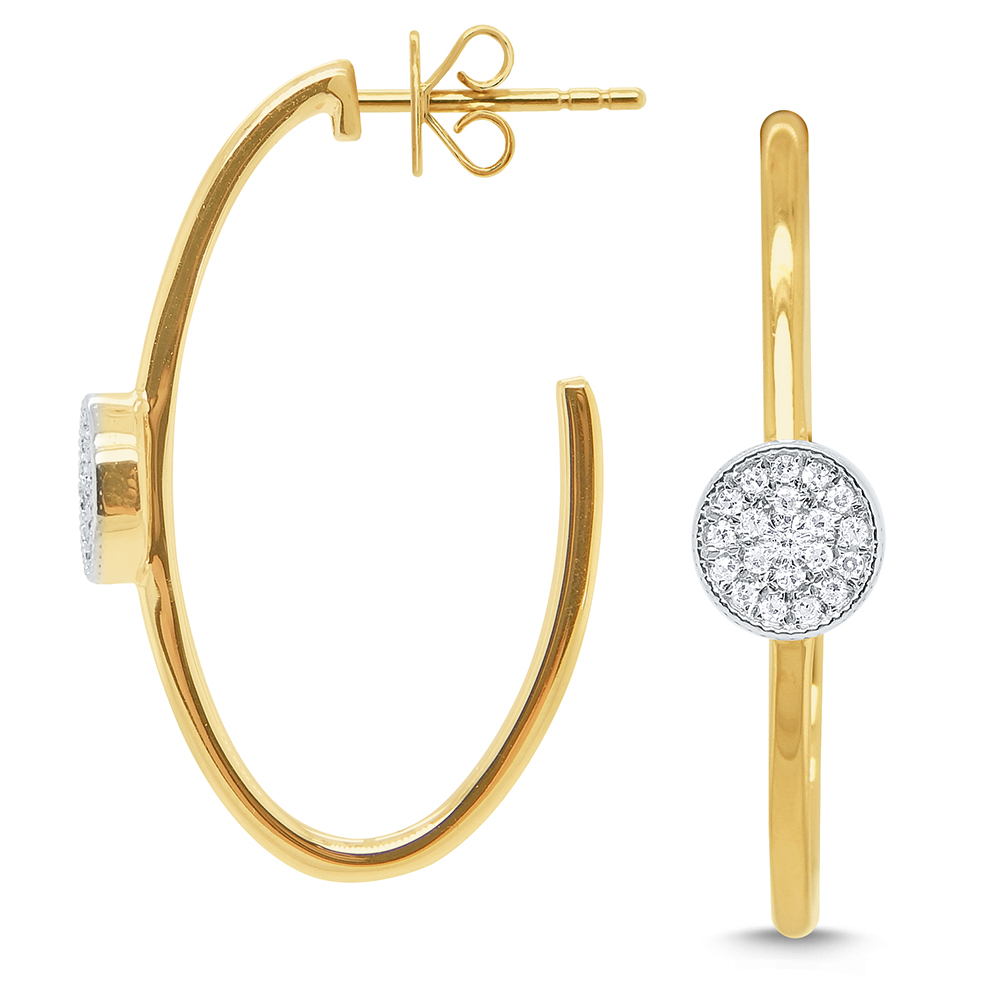 A diamond pave circle floats on a bold gold wire for a simple modern look.