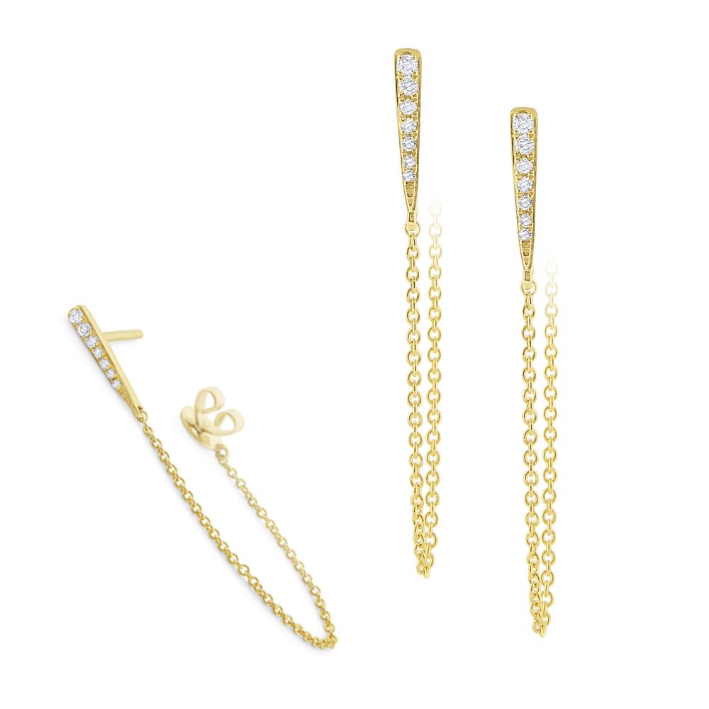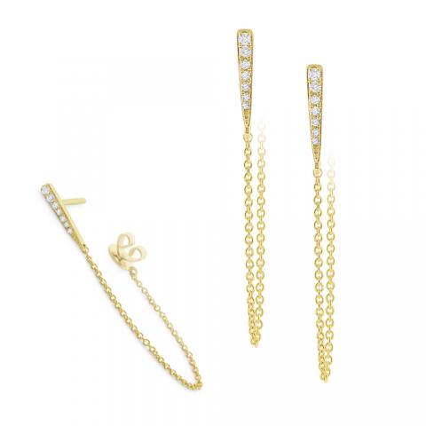 14 diamonds set on a 14K mini bar are anchored by a single cable chain.