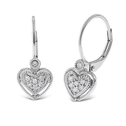 Diamond Heart Drop Earrings in 14k White Gold with 14 Diamonds weighing .09ct tw.