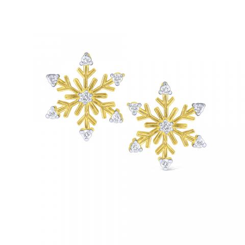 A pair of 14K gold diamond earrings are set with a total of 7 diamonds twinkling just as the snow crystals themselves.