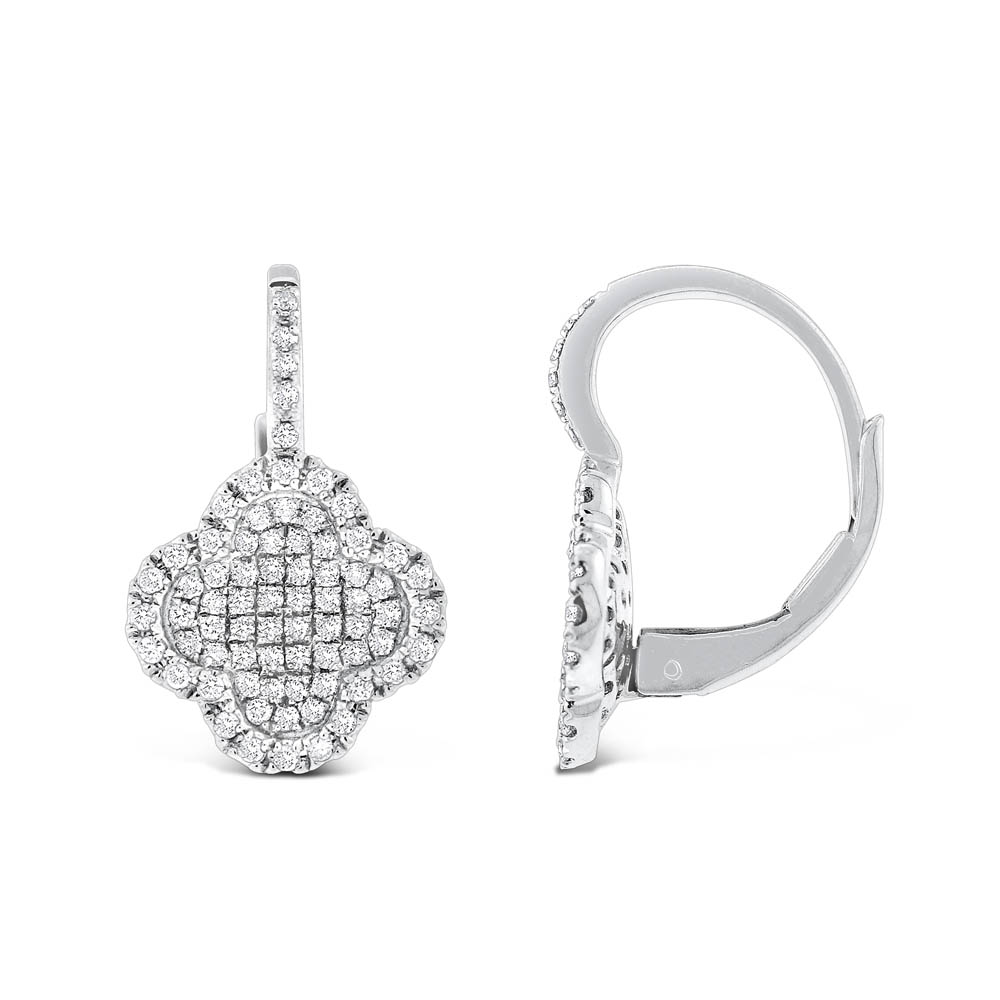 Diamond Small Pave Clover Earring in 14K White Gold with 148 Diamonds Weighing .49ct tw