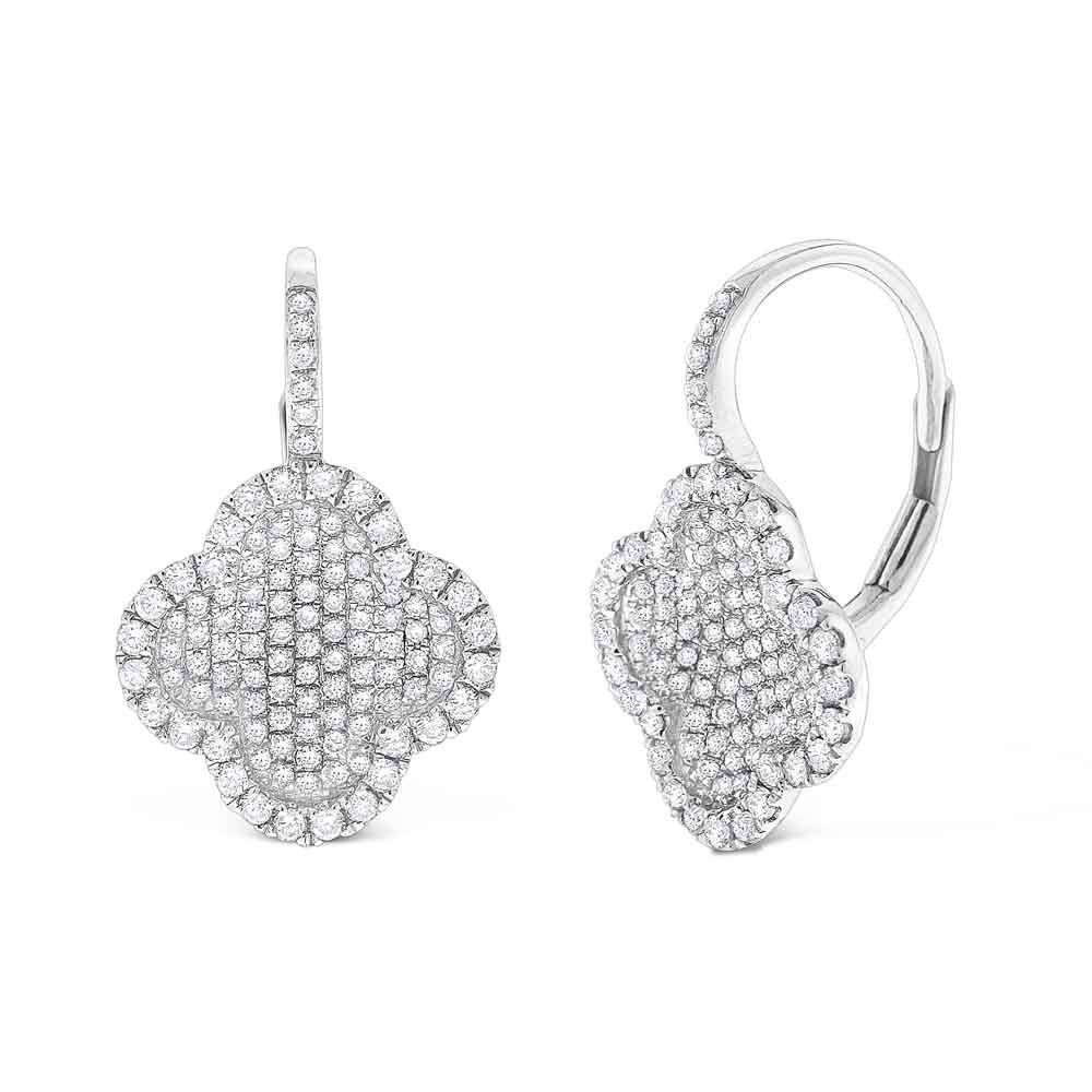 Diamond Large Pave Clover Earring in 14K White Gold with 214 Diamonds Weighing .87ct tw