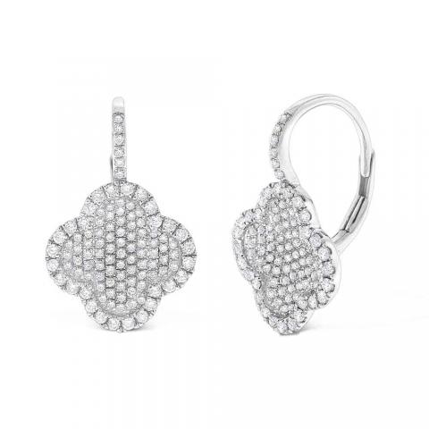 Looking for stylish and sophisticated earrings to don at your next event? Youre in luck as these fabulous diamond large pave clover earrings, which are set in 14K white gold with and incredible 214 glittering diamonds weighing .87ct tw are sure to delight. People will stop you in your tracks to ask where you found these spectacular clovers.