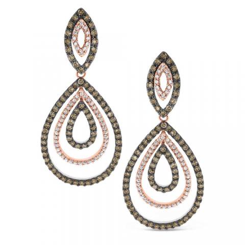 Champagne and White Diamond Teardrop Earring in 14K Rose Gold with 258 Diamonds Weighing 1.53ct tw