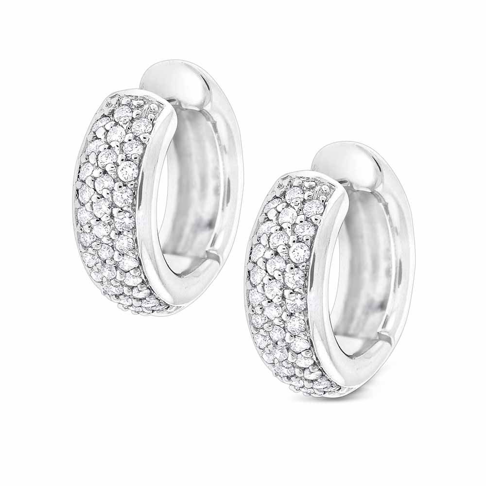 Diamond Pave Hoops in 14K White Gold with 66 Diamonds Weighing 1.00ct tw