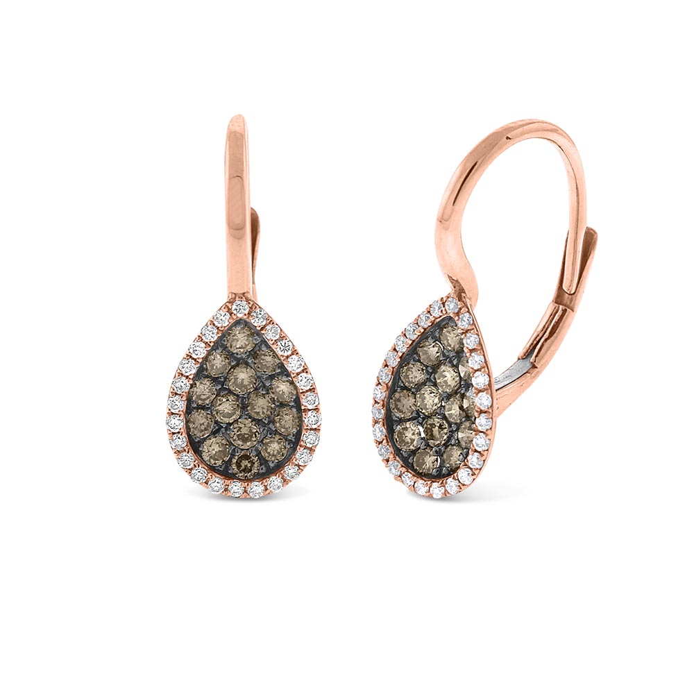 Champagne and White Diamond Teardrop Earrings in 14K Rose Gold with 78 Diamonds Weighing .55ct tw