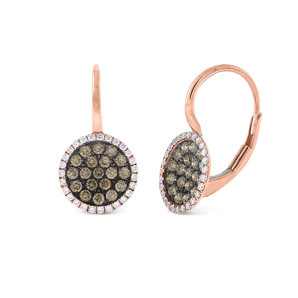 Champagne and White Diamond Disc Earrings in 14K Rose Gold with 92 Diamonds Weighing .61ct tw