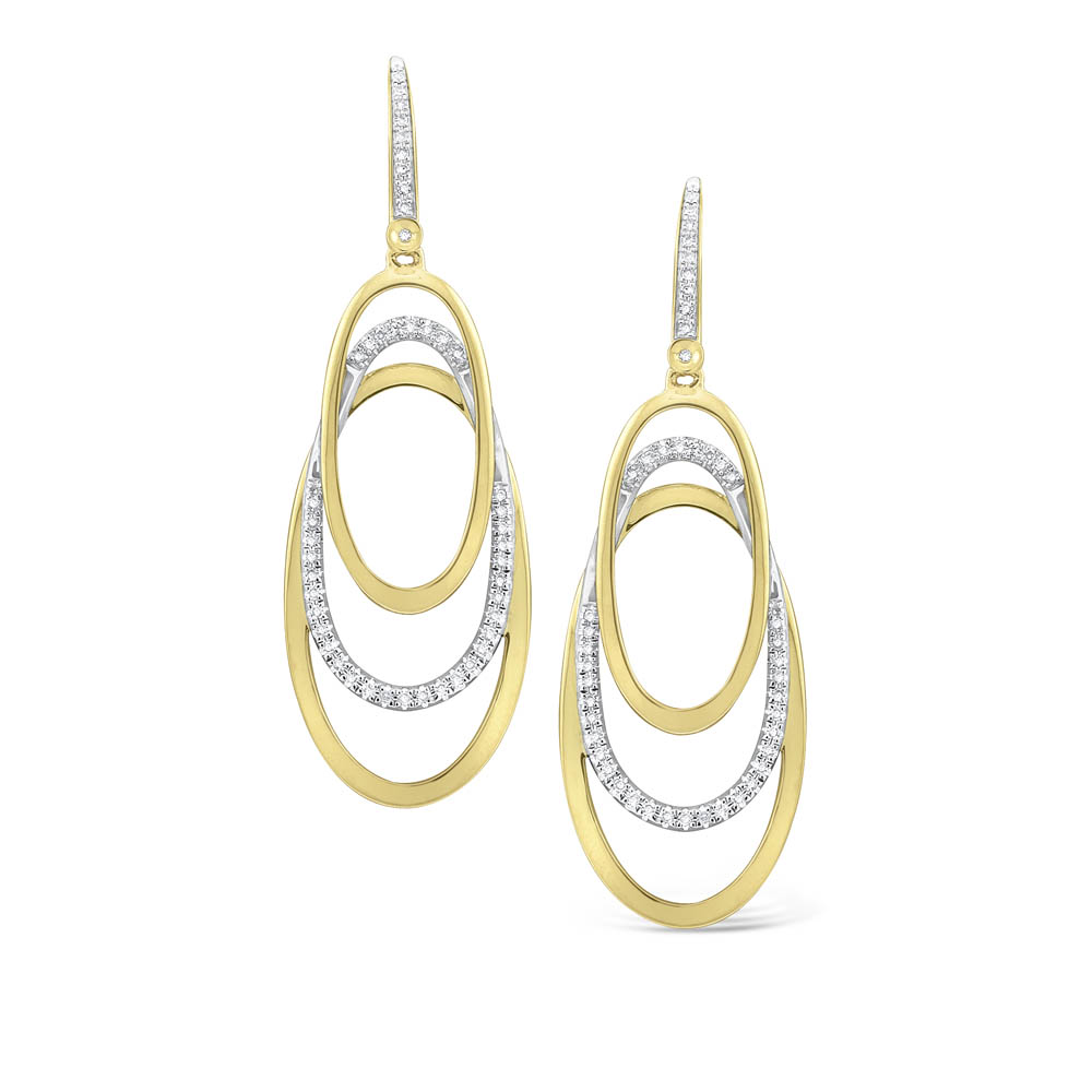 Diamond Multi Oval Earrings in 14K Yellow Gold with 98 Diamonds Weighing .21ct tw