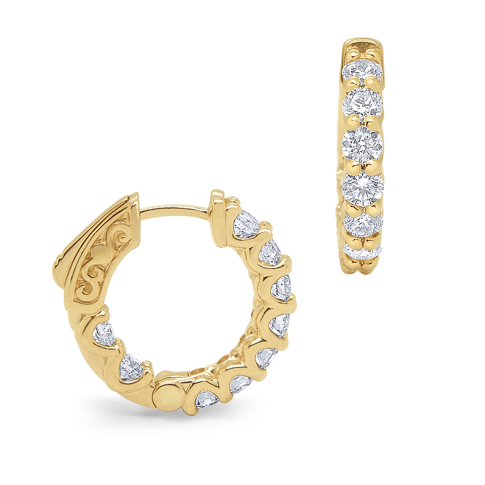 Two carats of diamonds make up these stunning inside out hoops. A staple for every jewelry collector that will always be in fashion.