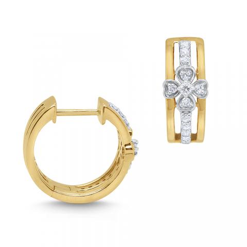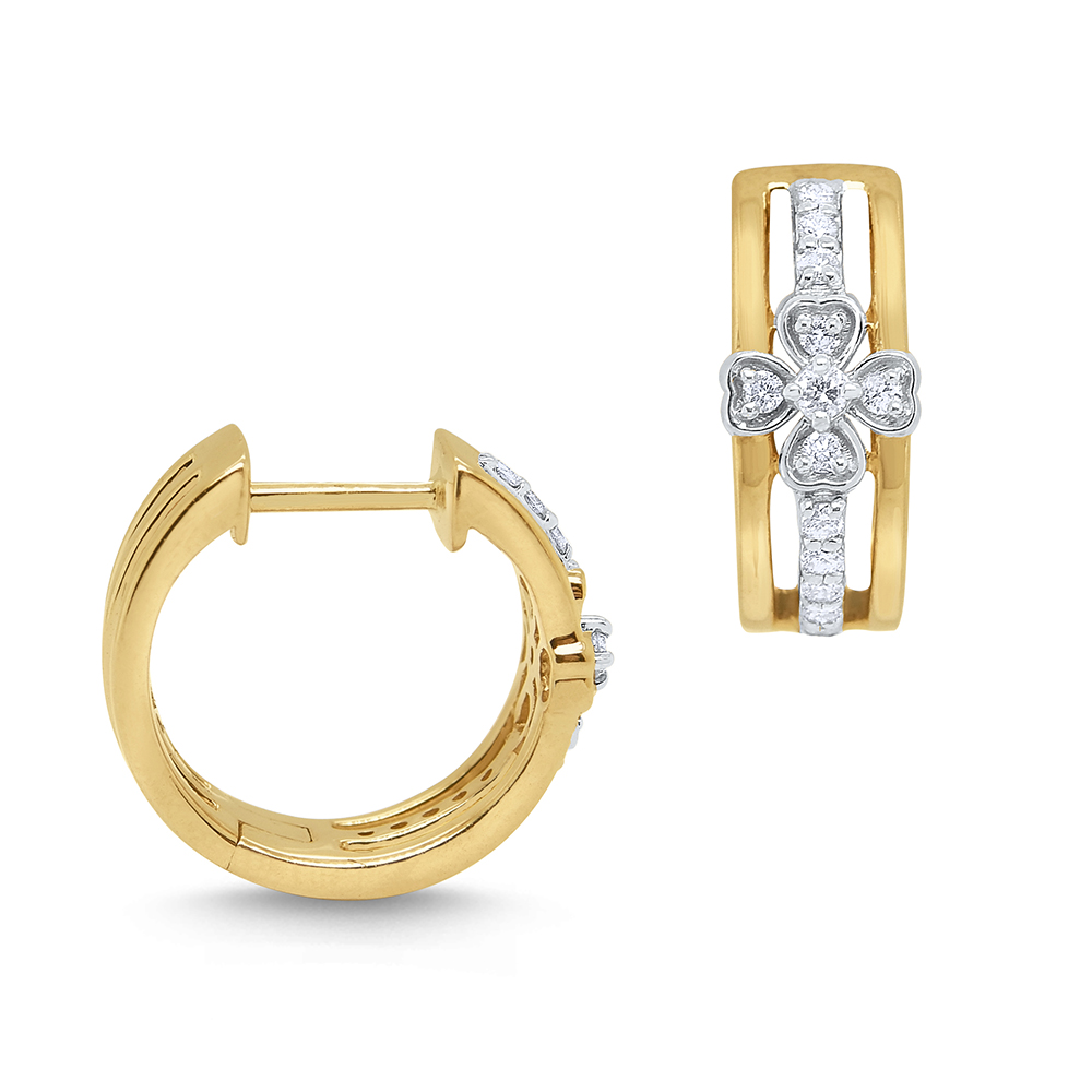 Gold huggie hoop earrings are accented with sweet flowers adding a romantic touch.