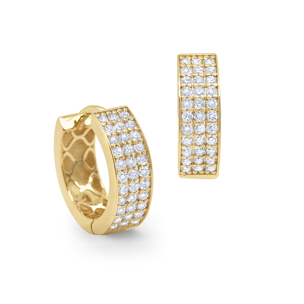 Three rows of sparkling diamonds shimmer and shine in these gold hoop earrings. Perfect for everyday wear.