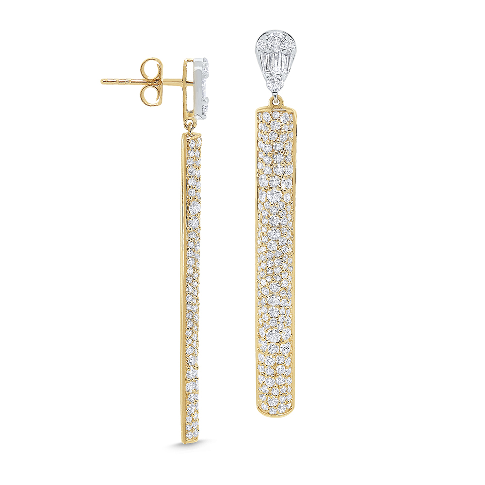 Glamorous, elegant, and stunning. These gold and pave contemporary drop earrings will surely turn heads.