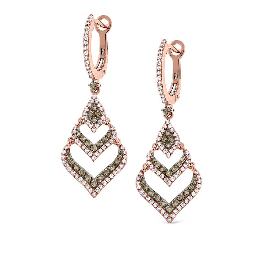 Champagne and White Diamond Fashion Earrings in 14K Rose Gold with 192 Diamonds Weighing .98ct tw