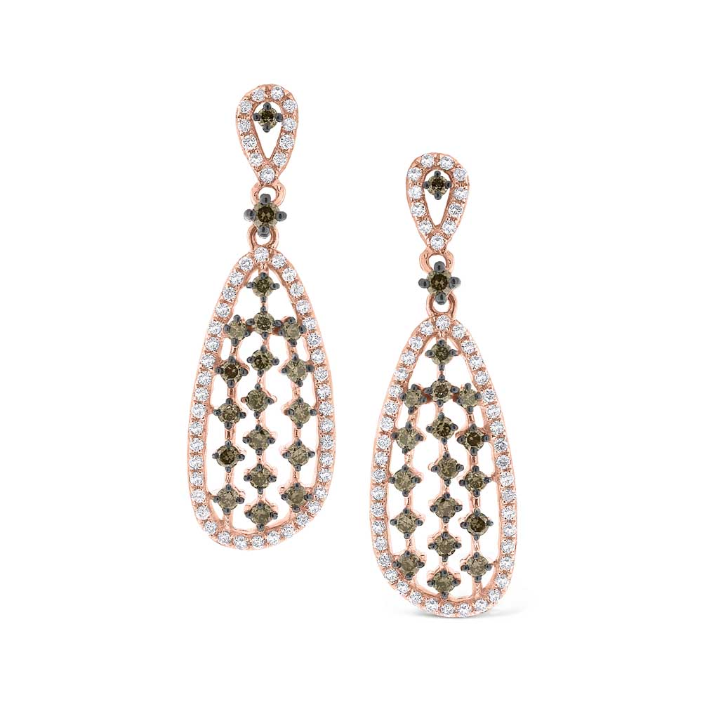 Champagne and White Diamond Fashion Earrings in 14K Rose Gold with 140 Diamonds Weighing 1.00ct tw