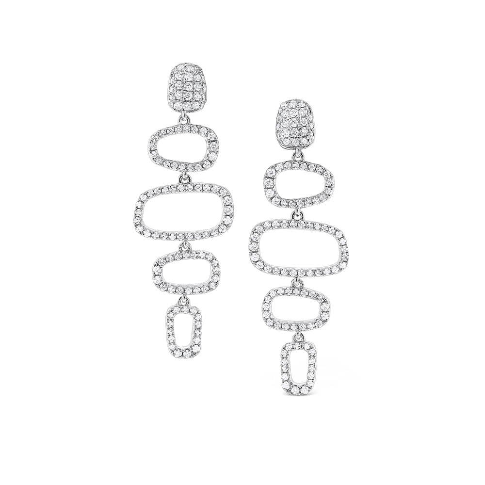 Diamond Modern Geometric Earrings in 14K White Gold with 204 Diamonds Weighing .87ct tw
