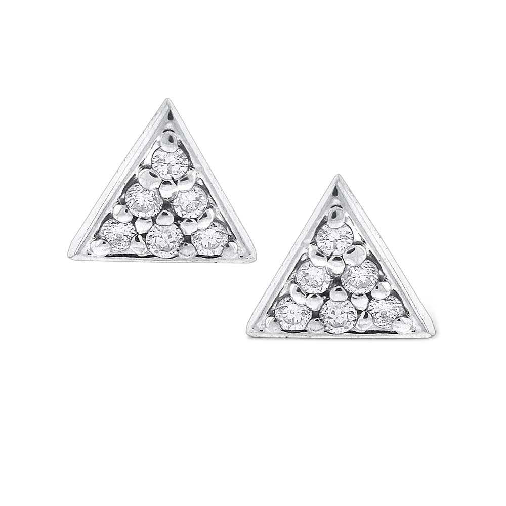 Diamond Triangle Stud Earrings in 14K White Gold with 12 Diamonds Weighing .12ct tw