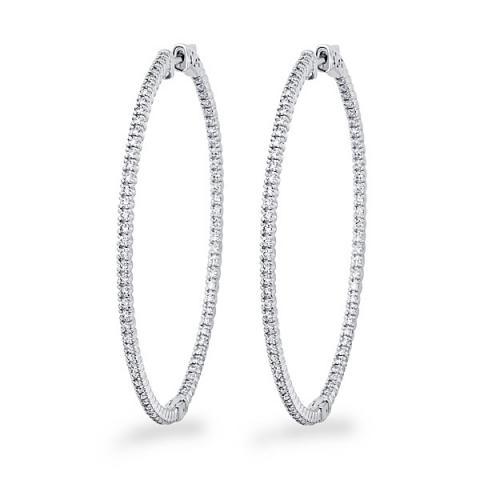 Diamond Inside Outside Hoop Earrings in 14k White Gold with 156 Diamonds weighing 1.48ct tw.