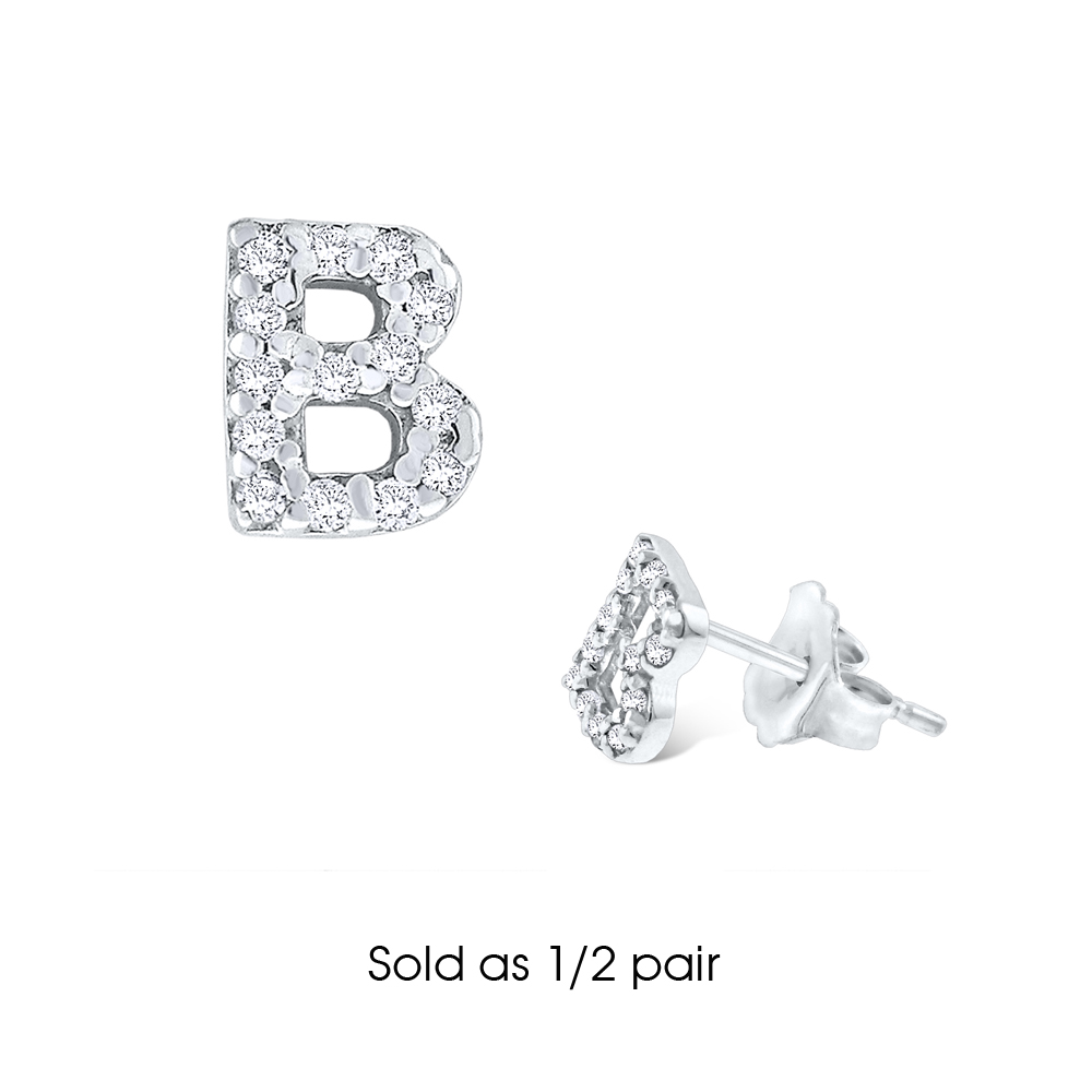 Diamond Single Initial "B" Stud Earring (1/2 pair)