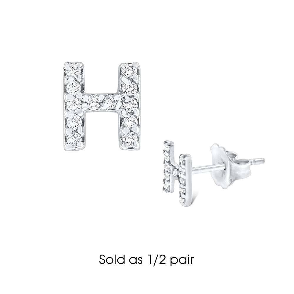 Diamond Single Initial "H" Stud Earring (1/2 pair)