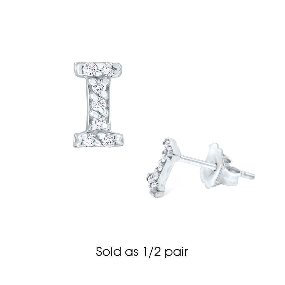 Diamond Single Initial "I" Stud Earring (1/2 pair)