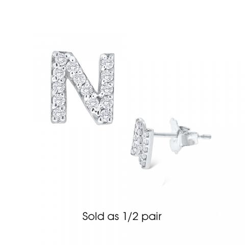 Diamond Single Initial "N" Stud Earring (1/2 pair)