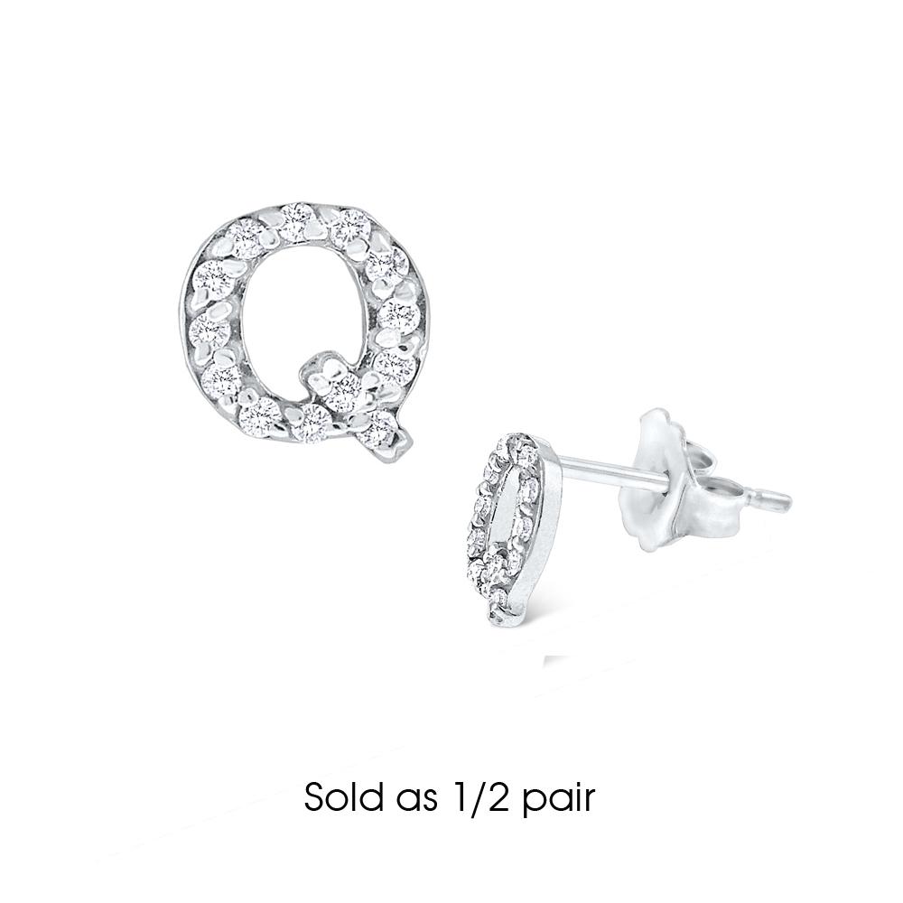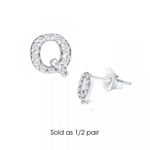 Diamond Single Initial "Q" Stud Earring (1/2 pair)