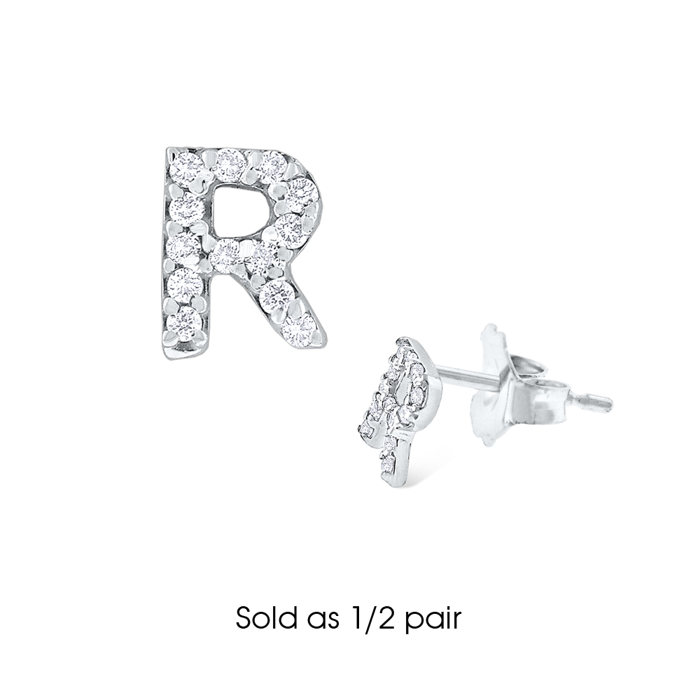Diamond Single Initial "R" Stud Earring (1/2 pair)