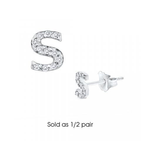 Diamond Single Initial "S" Stud Earring (1/2 pair)