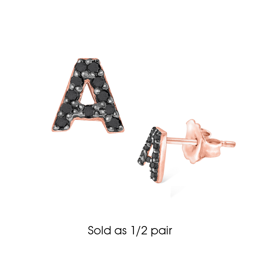 Black Diamond Single Initial "A" Stud Earring (1/2 pair)