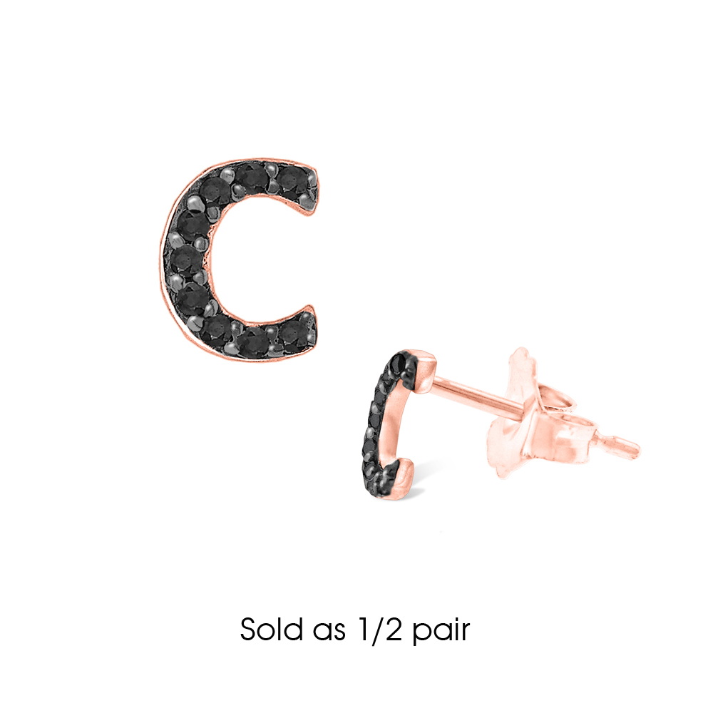 Black Diamond Single Initial "C" Stud Earring (1/2 pair)