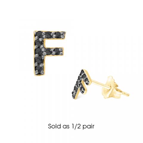 Black Diamond Single Initial "F" Stud Earring (1/2 pair)