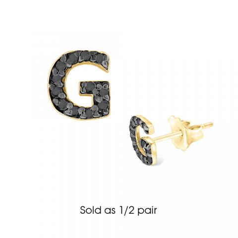 Black Diamond Single Initial "G" Stud Earring (1/2 pair)