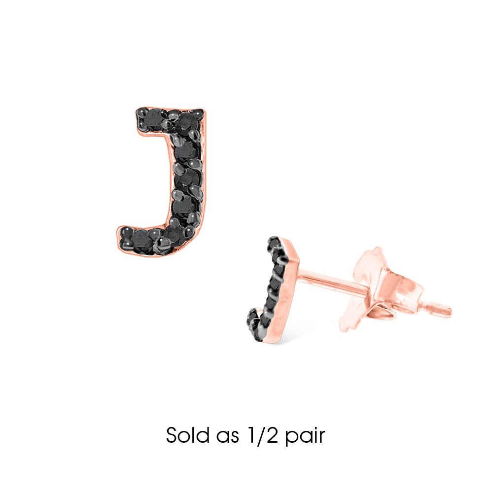 Black Diamond Single Initial "J" Stud Earring (1/2 pair)