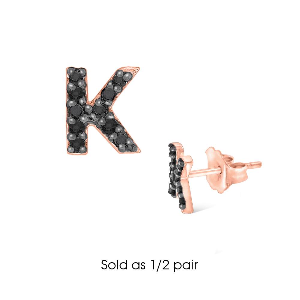 Black Diamond Single Initial "K" Stud Earring (1/2 pair)