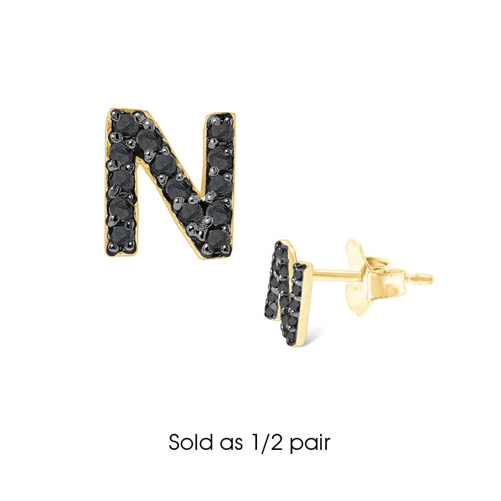 Black Diamond Single Initial "N" Stud Earring (1/2 pair)