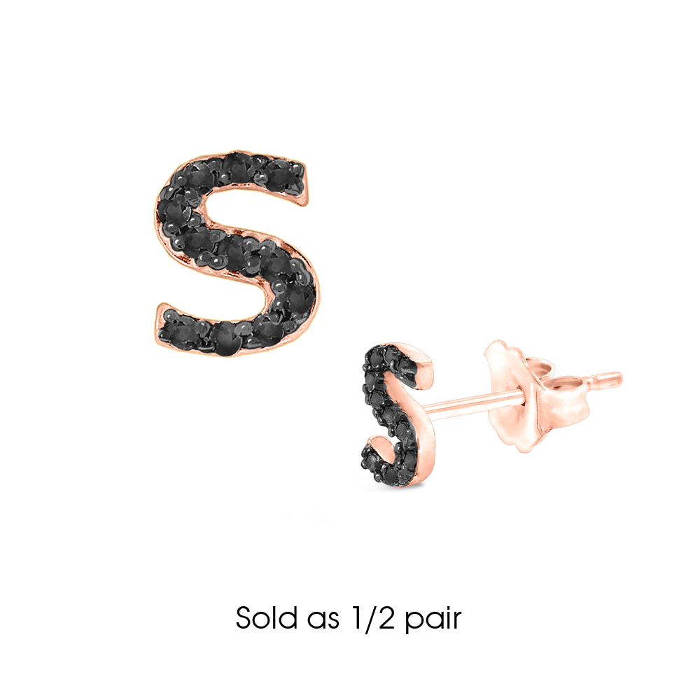 Black Diamond Single Initial "S" Stud Earring (1/2 pair)