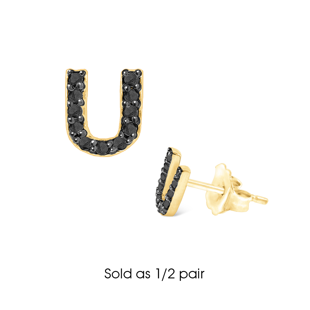 Black Diamond Single Initial "U" Stud Earring (1/2 pair)