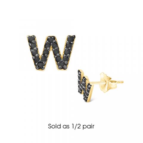 Black Diamond Single Initial "W" Stud Earring (1/2 pair)