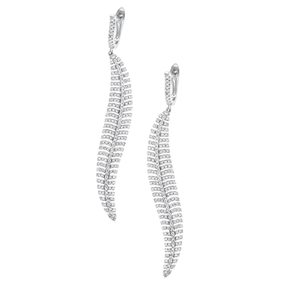 Diamond Feather Earrings in 14K White Gold with 386 Diamonds Weighing 1.45 ct tw