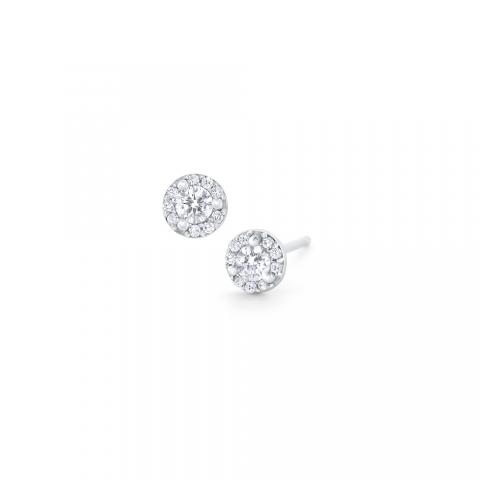 Celebrate timeless elegance with these classic earrings. Two sparkling round brilliant diamonds are framed by a halo of diamonds for a little pop of bling. You can’t go wrong wearing these pretty accents everyday.
