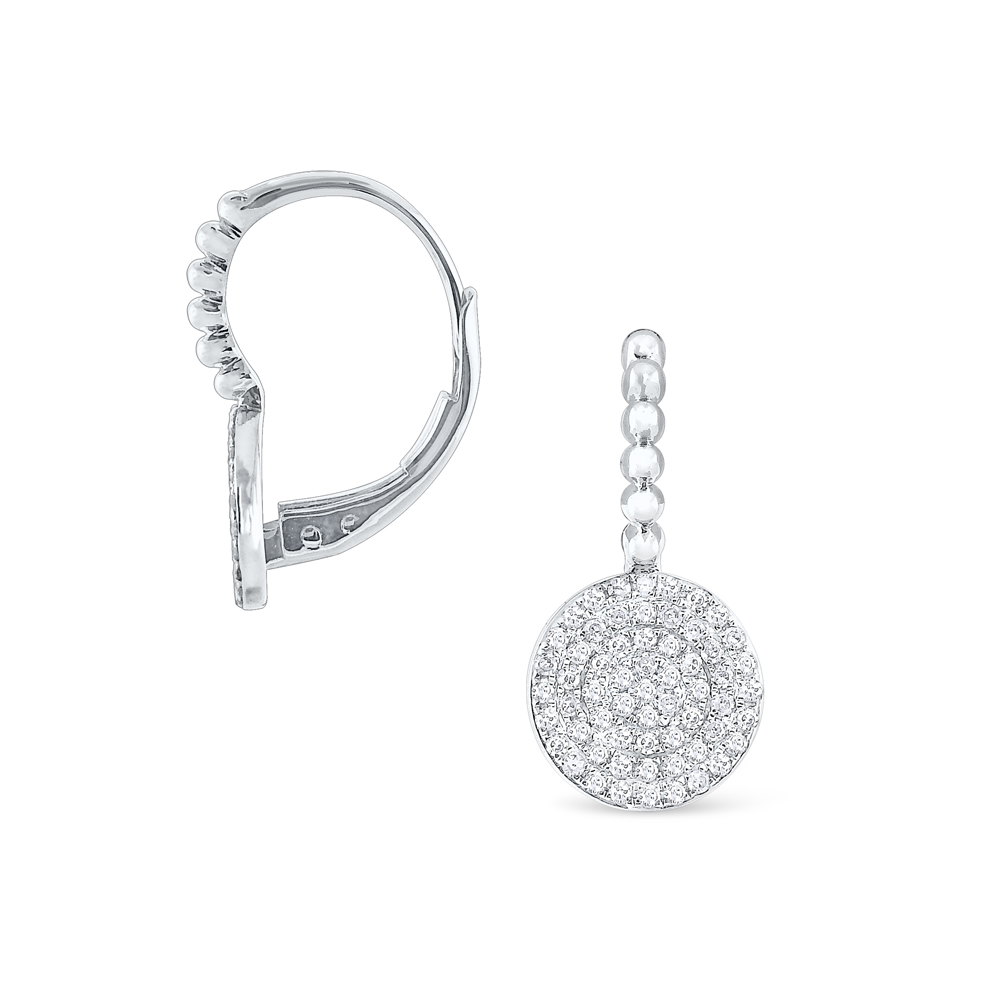 Diamond Pavé Round Disc Earrings Set in 14 Kt. White Gold