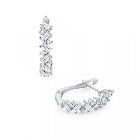 These stunning earrings are a delightful twist on the classic huggie earring. Shining round brilliant & baguette diamonds are arrayed down the front in a fun and chic fashion. Part of KC Designs Mosaic Collection, the flash of sparkle from these dazzling hoops is sure to get you noticed.