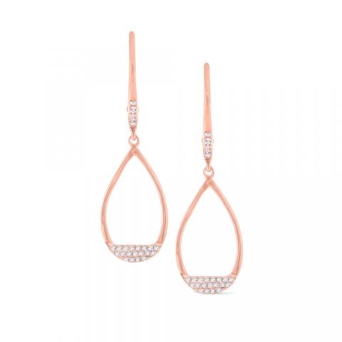 These teardrop frame earrings feature a fun & modern accent of diamonds at the bottom and in a line on top. 52 shining diamonds, weighing 0.16ct tw, shown here in 14 Kt. rose gold, make the perfect accessory for any hairstyle.