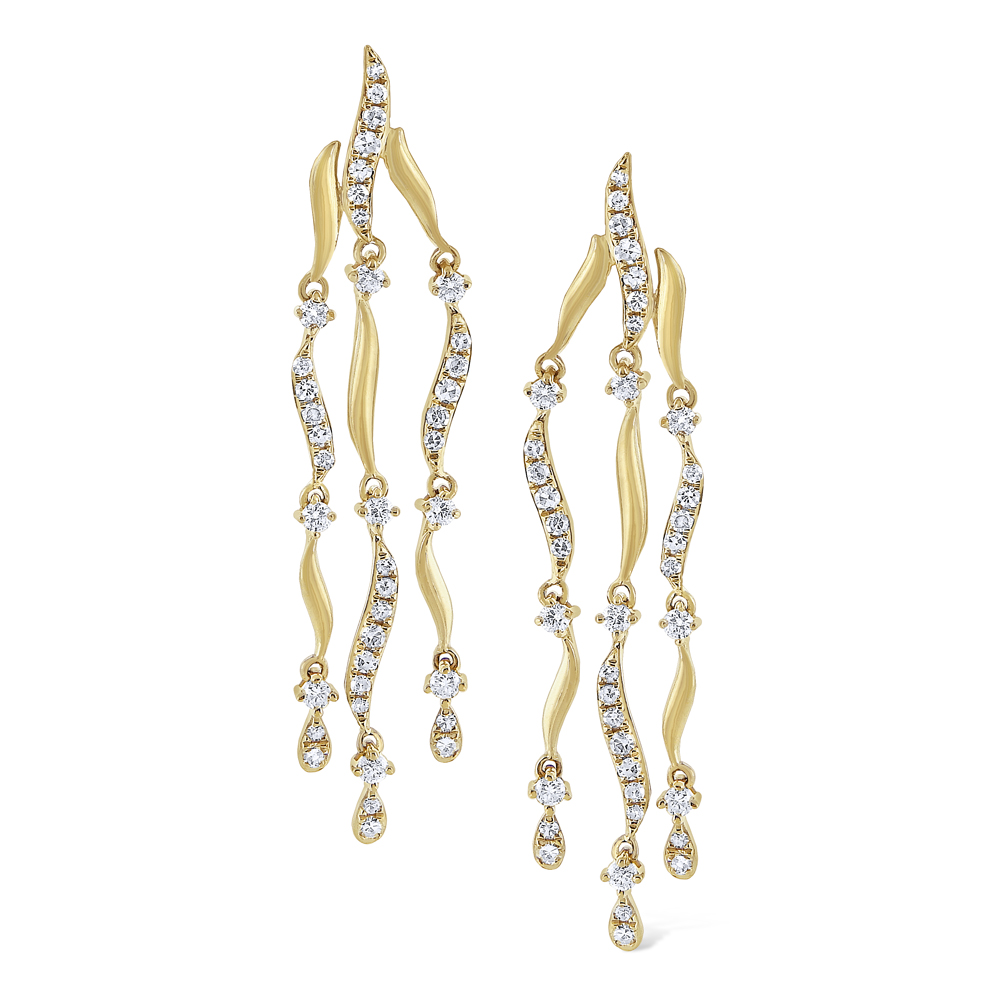 Round brilliant diamonds flash in these stylish, dangly earrings. Three strands hang down from each earring, creating nice movement at a flattering length.